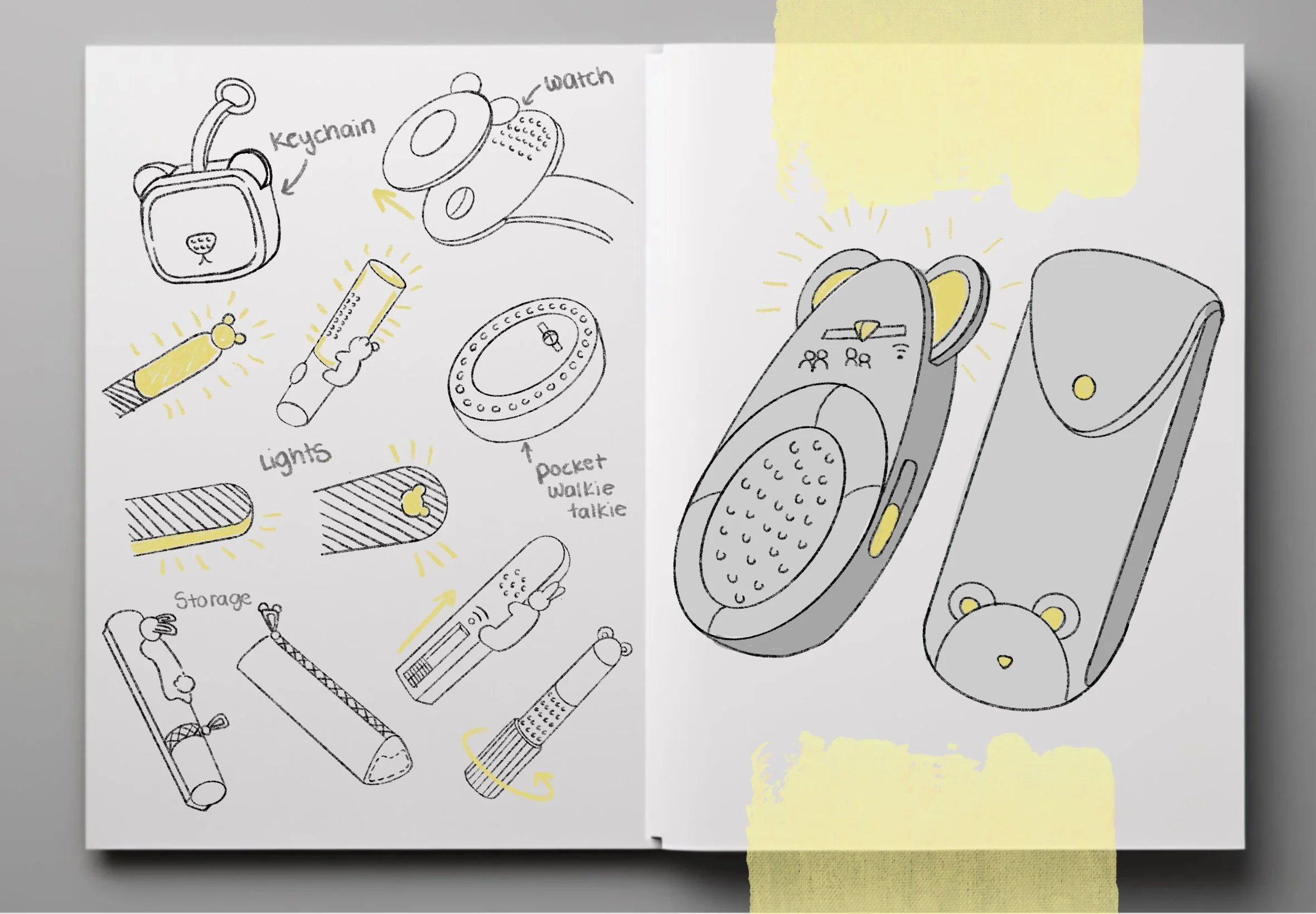 I drew from kids’ toys to create a soft, friendly walkie-talkie with fun motion and lights that encourage kids to interact, offering a more engaging alternative to children connection rather than relying on technology.